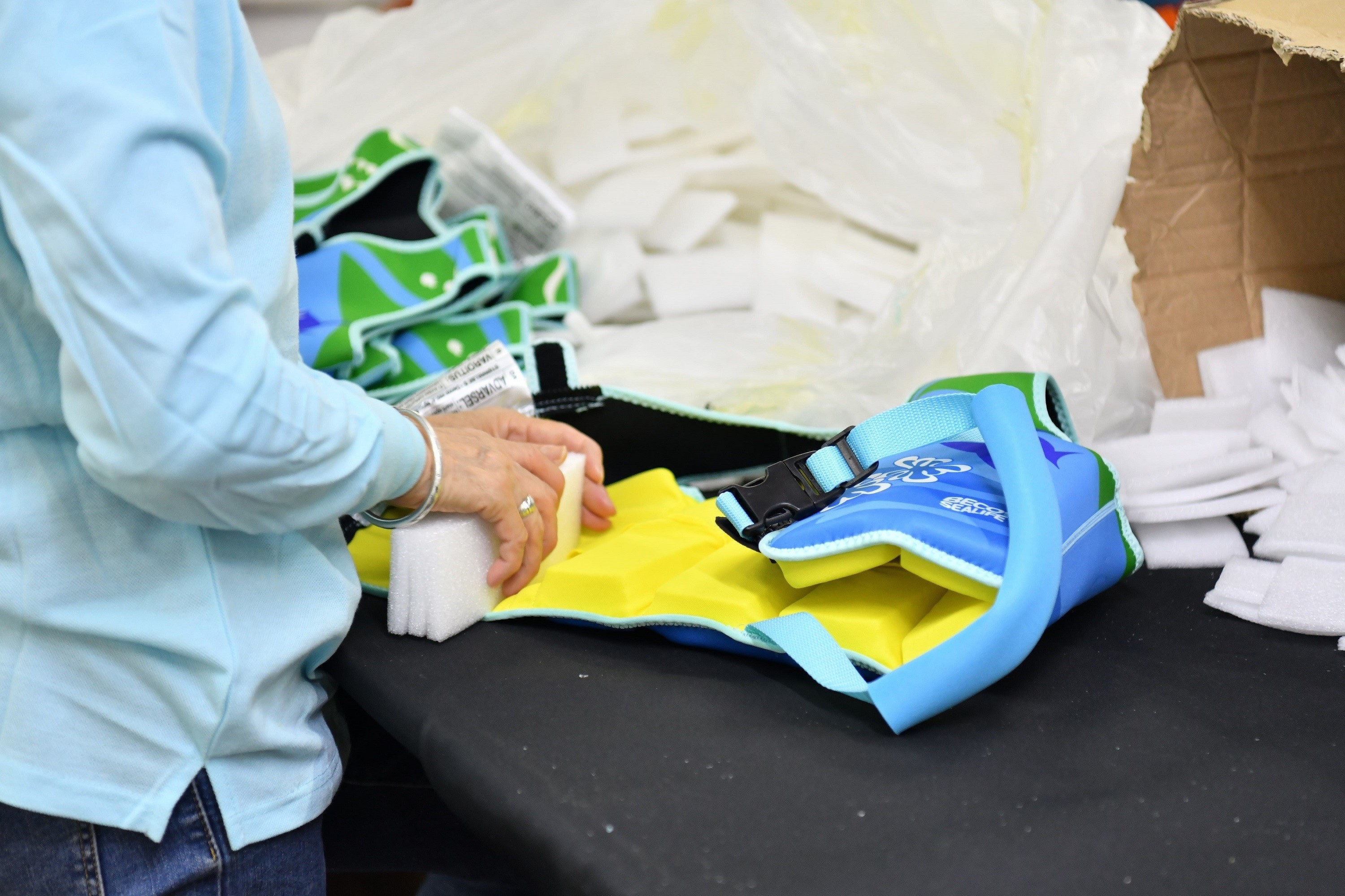 Our team is working on adding refillable foam to the swim vest.