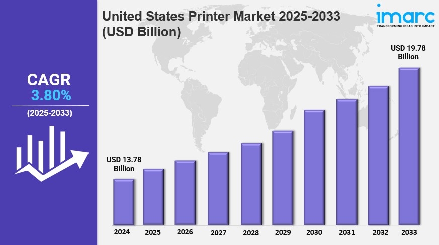 The United States printer market size was valued at USD 13.78 Billion in 2024. Looking forward, IMARC Group estimates the market to reach USD 19.78 Billion by 2033, exhibiting a CAGR of 3.80% from 2025-2033.