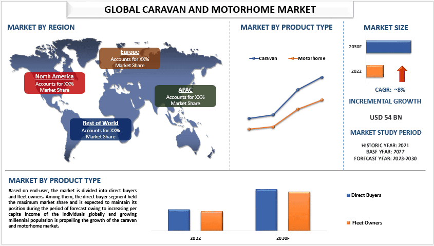 Global Caravan and Motorhome Market was valued at USD 54 billion in the year 2022 and is expected to grow at a steady rate of around 8% during the forecast period 2023-2030