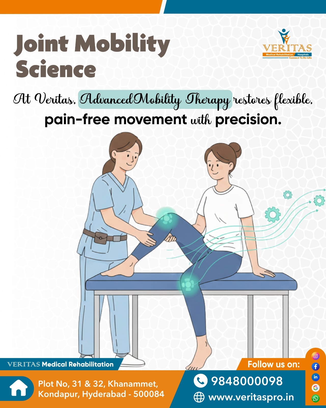 #VeritasRehab #JointMobility #Kondapur #BestRehabCenterInHyderabad #MovementScience #Physiotherapy #OrthoRehab #InjuryRecovery #RehabCare #HyderabadHealthcare #MoveBetter #LiveFree